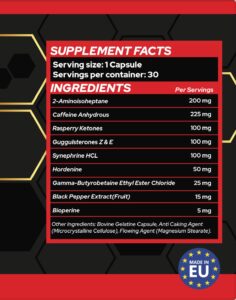 This product contains high level caffeine and Synephrine HCL.